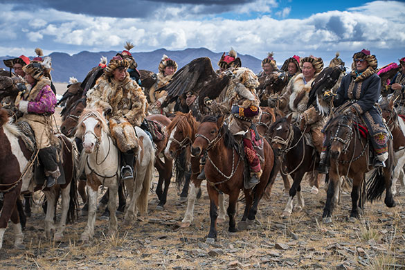 The Eagle festival or Golden Eagle festival is a traditional festival, annually held in the first week of October, in Western Mongolia by local Kazakh minority and the Mongolian Eagle Hunters’ Association for the purpose of promoting their heritage to the next generation. In the eagle festival, Kazakhs show their eagle hunting culture, skills and compete the catching small stuffed animals such as foxes and hares with trained golden eagles. Additionally, this festival includes a lot of activities such as parade, best eagle at hunting and locating, cultural and handicrafts exhibition, Uriankhai archery competition, and goatskin tug of war on horseback.