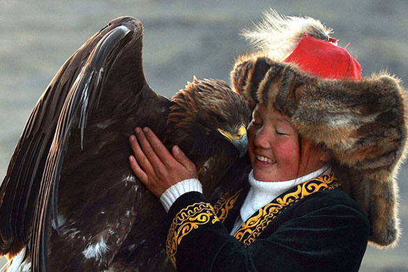The season for hunting with eagles is from October to March. Eagles hunters mainly hunt hares, marmots and foxes but occasionally catch wolves. The eagles are given a piece of meat as a reward after each hunt. Golden eagles are skilled hunters.