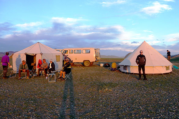 In the morning we leave the vehciles and upload the luggage on the camels and trek for approximately 15 kilometres to the base camp. We will arrive at our base camp which is on the edge of the Potanin Glacier offers panoramic views of the mountains and is a convenient base for our climbs and exploring the surrounding region. Overnight in tent